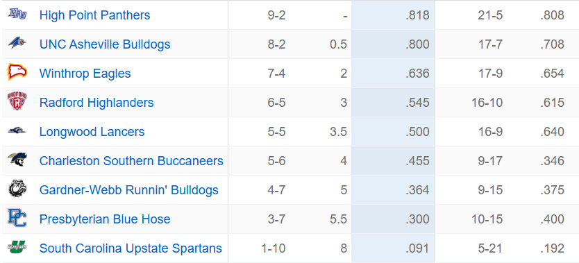 After thier wins over Radford on the road and more importantly win at home over UNC Asheville has now put the Panthers in 1st place headed into their toughest part of the schedule with games at home vs Longwood and at Winthrop.