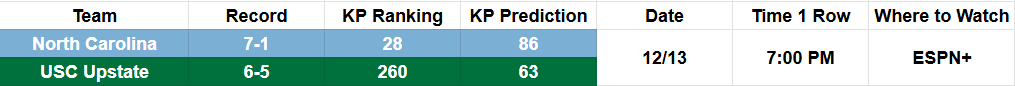 Official Prediction: North Carolina 92 - USC Upstate 77