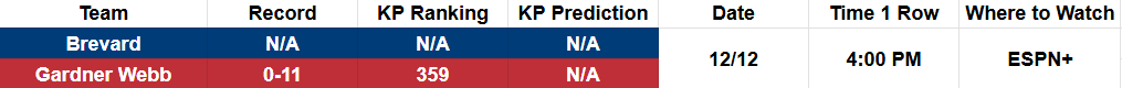 Game Breakdown: This season has been long and torturous for Gardner Webb. Starting the season with 11 straight losses including one to North Greenville. Luckily, I see that streak coming to an end. Simply, I feel Brevard likely won’t shoot 50%+ from 3 to follow in North Greenville’s footsteps.