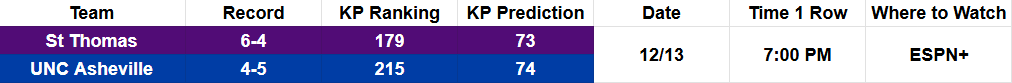 Official Prediction: UNC Asheville 79 - St Thomas 75